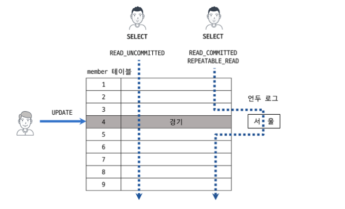 - InnoDB 스토리지 엔진은 트랜잭션과 격리 수준을 보장하기 위해 DML로 변경되기 이전 버전의 데이터를 별도로 백업한다. 이런 데이터를 언두로그라고 한다.