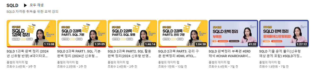 - 유튜브에 2024 sqld 강의 치면 유일하게 잘 정리돼서 올라온 영상이다